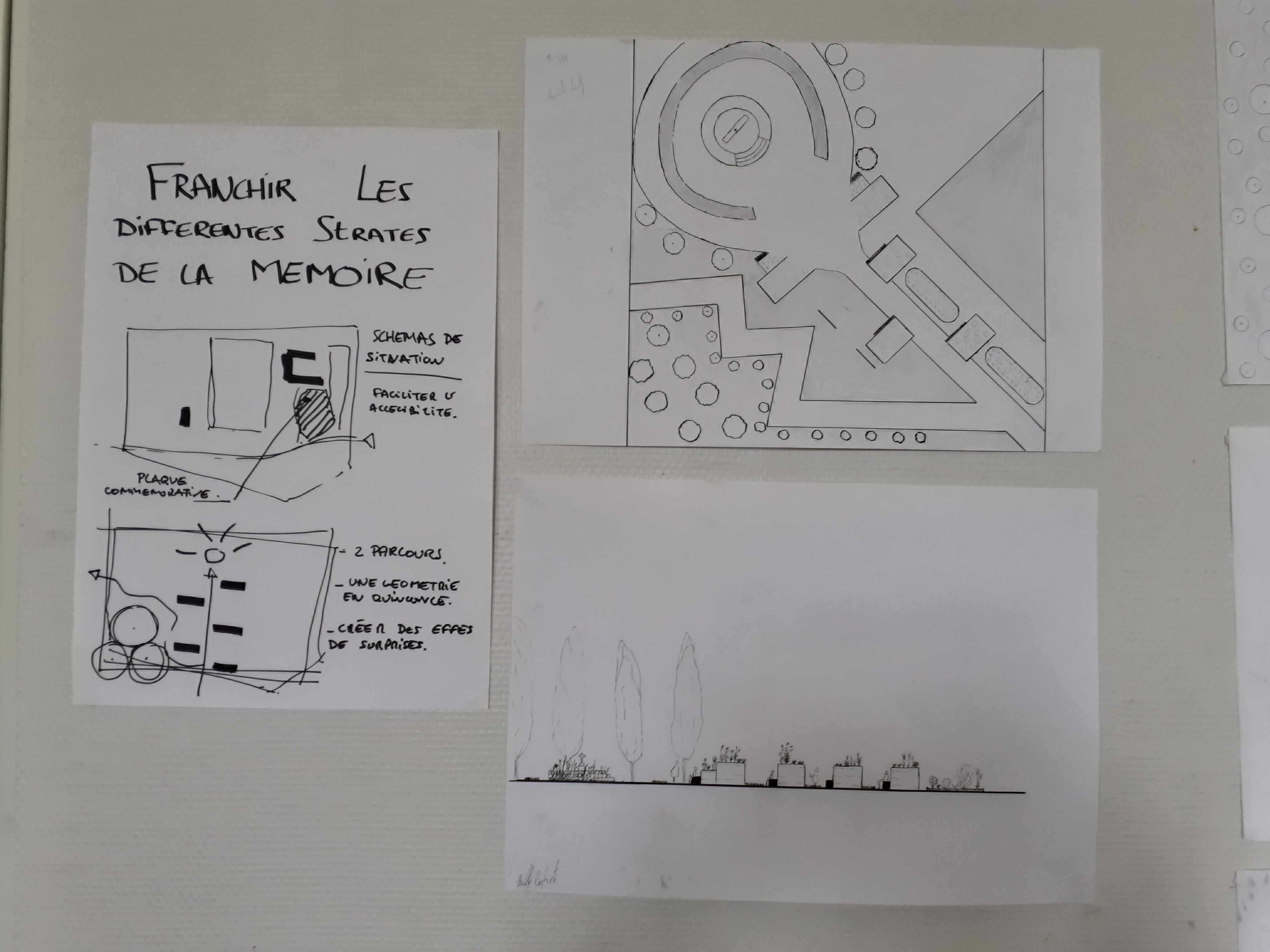 A partir d’un cahier des charges, alors que le Mémorial n’est qu’une simple ébauche, les étudiants – seul ou en groupe – ont réfléchi à des plans d’aménagement pour le futur Mémorial.