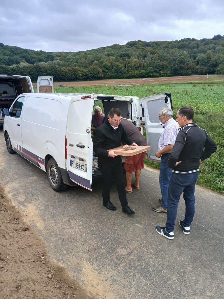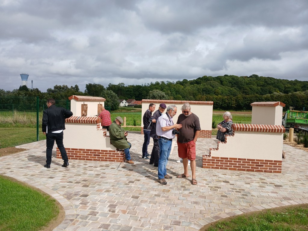 Au cours d’un après-midi venteux, le bureau du comité Noyon-Guiscard du Souvenir Français était au rendez-vous d’un moment clé dans la réalisation du Mémorial : la pose des bas-reliefs